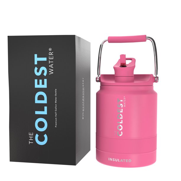 Coldest Sports Water Bottle 1 2 Gallon Straw Lid Leak Proof Vacuum Insulated Stainless Steel Hot Cold Double Walled Thermo Mug Metal Canteen 1 2 Gallon Flaming O Pink Walmart Com